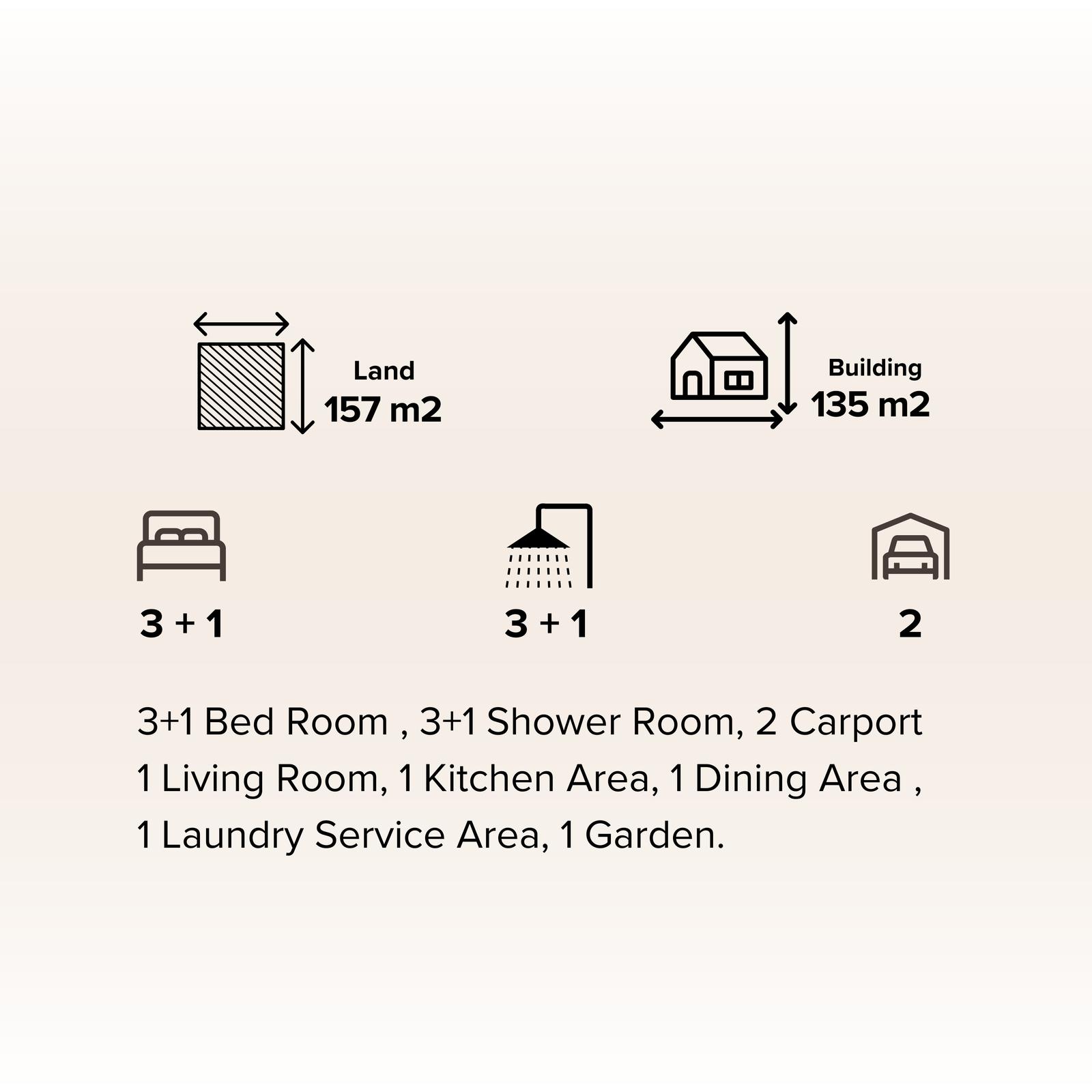 Only 1 unit left. With building area of 145m2 of each unit in our iconic futuristic tropical design, site next to the security post, and at the front part of the major house complex, the project shows itself its great value and exclusivity in the neighborhood.